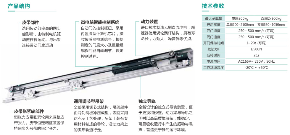 ◆ 負(fù)載變化自動適應(yīng)功能,門扇輕重?zé)o須調(diào)整。